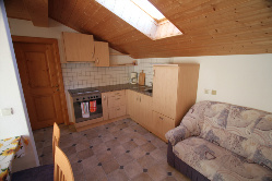 Im Wohnraum befindet sich eine Couch die sich zum Doppelbett ausziehen läßt.