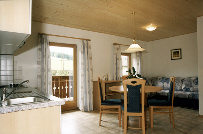 Questo appartamento ha ca. 40 m2 ed è considerato per due fino a quattro persone. C'è anche il balcone, dove ci sono delle sedie ed un tavolo. Sul balcone si arriva dal soggiorno.
